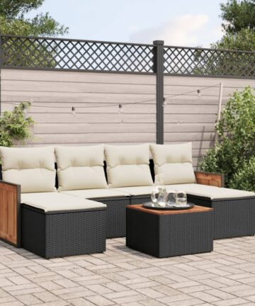 Diese Garten-Sofagarnitur ist die perfekte Ergänzung zu deinem Garten, deiner Terrasse oder deinem Innenhof. Sie bietet einen bequemen und einladenden Platz, um mit Familie und Freunden zu plaudern oder dich einfach nur zu entspannen und das Leben im Freien zu genießen. Langlebiges Material: PE-Rattan, auch als Poly Rattan bekannt, ist ein robustes, pflegeleichtes synthetisches Material, das die Optik von natürlichem Rattan aufweist. Es kennzeichnet sich durch ein geringes Eigengewicht und lässt sich einfach reinigen. Aufgrund seiner Haltbarkeit und Witterungsbeständigkeit wird es häufig bei der Herstellung von Gartenmöbeln verwendet.Stauraum mit wasserfestem Beutel: Das Gartensofa verfügen über ein Staufach unter der Sitzfläche, das mit einem wasserfesten Beutel zur Aufbewahrung von Kissen, Spielzeug und anderen Gegenständen versehen ist. Der Innenbeutel lässt sich mit Klettverschlüssen sicher und stabil an den Gartenmöbeln befestigen.Stabile und pflegeleichte Tischplatte: Dieser Gartentisch besitzt eine Tischplatte aus Akazienholz, die robust und langlebig ist und sich leicht mit einem feuchten Tuch reinigen lässt.Abnehmbarer und waschbarer Bezug: Diese Sitzkissen verfügen über abnehmbare Bezüge für einfaches Waschen und Pflegen.Modulares Design: Dank des modularen Designs lassen sich die Gartenmöbel völlig flexibel und einfach umstellen, um deinen Außenbereich ganz individuell zu gestalten. Gut zu wissen:Wir empfehlen dir, deine Gartenmöbel mit einer wasserdichten Hülle zu schützen, um lange Zeit eine ansprechende Optik aufzuweisen.