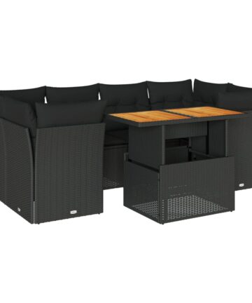 - Material: PE-Rattan, pulverbeschichteter Stahl, massives Akazienholz mit Ölfinish