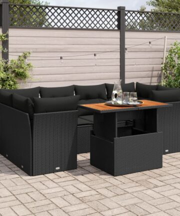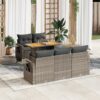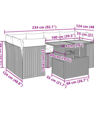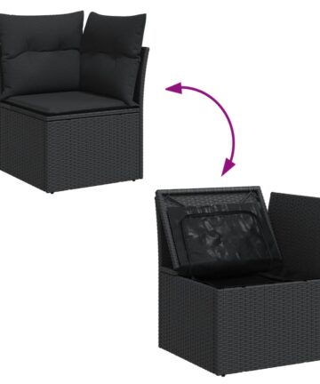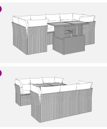 Diese Garten-Sofagarnitur ist die perfekte Ergänzung zu deinem Garten, deiner Terrasse oder deinem Innenhof. Sie bietet einen bequemen und einladenden Platz, um mit Familie und Freunden zu plaudern oder dich einfach nur zu entspannen und das Leben im Freien zu genießen. Langlebiges Material: PE-Rattan, auch als Poly Rattan bekannt, ist ein robustes, pflegeleichtes synthetisches Material, das die Optik von natürlichem Rattan aufweist. Es kennzeichnet sich durch ein geringes Eigengewicht und lässt sich einfach reinigen. Aufgrund seiner Haltbarkeit und Witterungsbeständigkeit wird es häufig bei der Herstellung von Gartenmöbeln verwendet.Stauraum mit wasserfestem Beutel: Das Gartensofa verfügen über ein Staufach unter der Sitzfläche, das mit einem wasserfesten Beutel zur Aufbewahrung von Kissen, Spielzeug und anderen Gegenständen versehen ist. Der Innenbeutel lässt sich mit Klettverschlüssen sicher und stabil an den Gartenmöbeln befestigen.Verstellbare Tischplatte: Die Tischplatte lässt sich anheben, um den Gartentisch höher zu machen und ihn von einem Couchtisch in einen Esstisch zu verwandeln. Er eignet sich daher perfekt für Gäste oder Mahlzeiten im Freien.Abnehmbarer und waschbarer Bezug: Diese Sitzkissen verfügen über abnehmbare Bezüge für einfaches Waschen und Pflegen.Modulares Design: Dank des modularen Designs lassen sich die Gartenmöbel völlig flexibel und einfach umstellen, um deinen Außenbereich ganz individuell zu gestalten. Gut zu wissen:Wir empfehlen dir, deine Gartenmöbel mit einer wasserdichten Hülle zu schützen, um lange Zeit eine ansprechende Optik aufzuweisen.