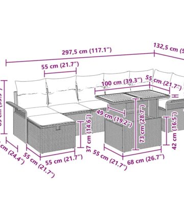 - Lieferumfang: 3 x Zweisitzer mit Stauraum, 1 x Ecksofa mit Stauraum, 2 x Armsofas mit Stauraum, 1 x Fußhocker mit Stauraum, 1 x Gartentisch