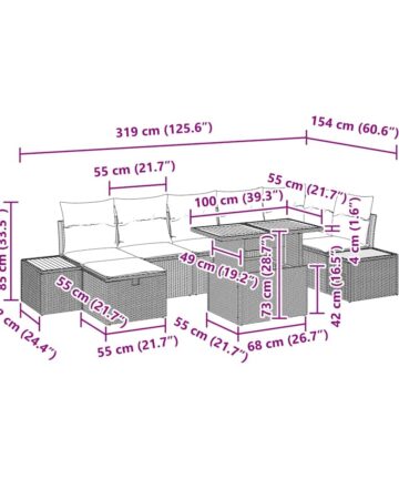 - Lieferumfang: 3 x Mittelsitz mit Stauraum, 1 x Ecksitz mit Stauraum, 2 x Sofa mit Stauraum, 1 x Fußhocker mit Stauraum, 1 x Gartentisch