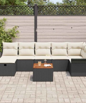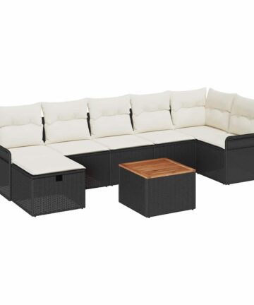 Dieses Garten-Sofa-Set kombiniert Stil und Komfort für deinen Outdoor-Bereich. Es ist perfekt zum Entspannen an warmen Nachmittagen oder für gesellige Runden mit Freunden und Familie. Die elegante Kombination aus schwarzem Poly-Rattan und cremeweißen Kissen verleiht ihm einen modernen Look, und das robuste Material ist ideal für verschiedene Wetterbedingungen. Modularer Aufbau: Das modulare Design lässt dir volle Flexibilität, um das Sofa nach deinen Wünschen anzupassen und optimal in deinem Garten oder auf deiner Terrasse einzusetzen. Jedes Teil lässt sich leicht bewegen – perfekt für entspannte Runden oder formelle Anlässe. Komfort pur: Die weichen Kissen aus hochwertigem, wetterfestem Stoff bieten dir die perfekte Mischung aus Komfort und Halt, sodass du lange entspannen kannst, ohne unbequem zu sitzen. Wenig Pflegeaufwand: Die Reinigung ist super einfach dank abnehmbarer, maschinenwaschbarer Kissenbezüge und einer glatten Oberfläche, die sich einfach mit einem feuchten Tuch wischen lässt – ideal für den Alltag. Stabile Konstruktion: Hergestellt mit einem robusten Stahlrahmen, ist dieses Set darauf ausgelegt, draußen zu bleiben und bietet langen Halt sowie Schutz vor Rost und Korrosion – perfekt für jede Outdoor-Region. Stylisches Highlight: Der Couchtisch mit seiner Holzplatte ergänzt das Sofa-Set perfekt und bietet dir eine praktische Ablage für Drinks und Snacks, während dein Außenbereich schick und modern aussieht.