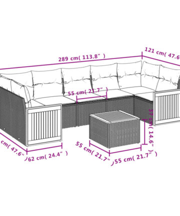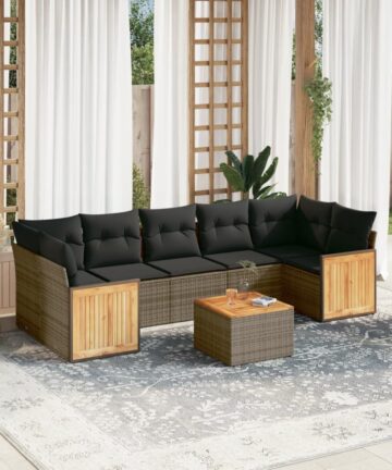 Diese Garten-Sofagarnitur ist die perfekte Ergänzung zu deinem Garten, deiner Terrasse oder deinem Innenhof. Sie bietet einen bequemen und einladenden Platz, um mit Familie und Freunden zu plaudern oder dich einfach nur zu entspannen und das Leben im Freien zu genießen. Langlebiges Material: PE-Rattan, auch als Poly Rattan bekannt, ist ein robustes, pflegeleichtes synthetisches Material, das die Optik von natürlichem Rattan aufweist. Es kennzeichnet sich durch ein geringes Eigengewicht und lässt sich einfach reinigen. Aufgrund seiner Haltbarkeit und Witterungsbeständigkeit wird es häufig bei der Herstellung von Gartenmöbeln verwendet.Stauraum mit wasserfestem Beutel: Das Gartensofa verfügen über ein Staufach unter der Sitzfläche, das mit einem wasserfesten Beutel zur Aufbewahrung von Kissen, Spielzeug und anderen Gegenständen versehen ist. Der Innenbeutel lässt sich mit Klettverschlüssen sicher und stabil an den Gartenmöbeln befestigen.Stabile und pflegeleichte Tischplatte: Dieser Gartentisch besitzt eine Tischplatte aus Akazienholz, die robust und langlebig ist und sich leicht mit einem feuchten Tuch reinigen lässt.Abnehmbarer und waschbarer Bezug: Diese Sitzkissen verfügen über abnehmbare Bezüge für einfaches Waschen und Pflegen.Modulares Design: Dank des modularen Designs lassen sich die Gartenmöbel völlig flexibel und einfach umstellen, um deinen Außenbereich ganz individuell zu gestalten. Gut zu wissen:Wir empfehlen dir, deine Gartenmöbel mit einer wasserdichten Hülle zu schützen, um lange Zeit eine ansprechende Optik aufzuweisen.