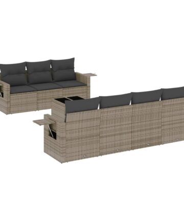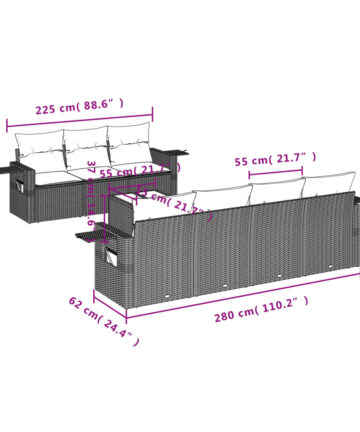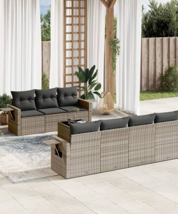 Diese Garten-Sofagarnitur ist die perfekte Ergänzung zu deinem Garten, deiner Terrasse oder deinem Innenhof. Sie bietet einen bequemen und einladenden Platz, um mit Familie und Freunden zu plaudern oder dich einfach nur zu entspannen und das Leben im Freien zu genießen. Langlebiges Material: PE-Rattan, auch als Poly Rattan bekannt, ist ein robustes, pflegeleichtes synthetisches Material, das die Optik von natürlichem Rattan aufweist. Es kennzeichnet sich durch ein geringes Eigengewicht und lässt sich einfach reinigen. Aufgrund seiner Haltbarkeit und Witterungsbeständigkeit wird es häufig bei der Herstellung von Gartenmöbeln verwendet.Stauraum mit wasserfestem Beutel: Das Gartensofa verfügen über ein Staufach unter der Sitzfläche, das mit einem wasserfesten Beutel zur Aufbewahrung von Kissen, Spielzeug und anderen Gegenständen versehen ist. Der Innenbeutel lässt sich mit Klettverschlüssen sicher und stabil an den Gartenmöbeln befestigen.Praktischer Beistelltisch: Dieses Gartensofa verfügt über klappbare Ablagen mit Gasfedern an den Armlehnen, auf denen du verschieden Sachen griffbereit aufbewahren kannst.Abnehmbarer und waschbarer Bezug: Diese Sitzkissen verfügen über abnehmbare Bezüge für einfaches Waschen und Pflegen.Modulares Design: Dank des modularen Designs lassen sich die Gartenmöbel völlig flexibel und einfach umstellen, um deinen Außenbereich ganz individuell zu gestalten. Gut zu wissen:Wir empfehlen dir, deine Gartenmöbel mit einer wasserdichten Hülle zu schützen, um lange Zeit eine ansprechende Optik aufzuweisen.
