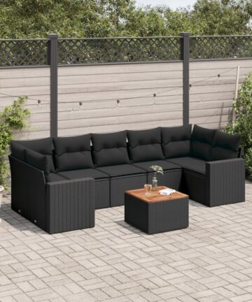 Diese Garten-Sofagarnitur ist die perfekte Ergänzung zu deinem Garten, deiner Terrasse oder deinem Innenhof. Sie bietet einen bequemen und einladenden Platz, um mit Familie und Freunden zu plaudern oder dich einfach nur zu entspannen und das Leben im Freien zu genießen. Langlebiges Material: PE-Rattan, auch als Poly Rattan bekannt, ist ein robustes, pflegeleichtes synthetisches Material, das die Optik von natürlichem Rattan aufweist. Es kennzeichnet sich durch ein geringes Eigengewicht und lässt sich einfach reinigen. Aufgrund seiner Haltbarkeit und Witterungsbeständigkeit wird es häufig bei der Herstellung von Gartenmöbeln verwendet.Bequemes Sitzerlebnis: Dieser Gartensessel mit dick gepolsterten Kissen bietet ein angenehmes Sitzgefühl.Stabile und pflegeleichte Tischplatte: Dieser Gartentisch besitzt eine Tischplatte aus Akazienholz, die robust und langlebig ist und sich leicht mit einem feuchten Tuch reinigen lässt.Abnehmbarer und waschbarer Bezug: Diese Sitzkissen verfügen über abnehmbare Bezüge für einfaches Waschen und Pflegen.Modulares Design: Dank des modularen Designs lassen sich die Gartenmöbel völlig flexibel und einfach umstellen, um deinen Außenbereich ganz individuell zu gestalten. Gut zu wissen:Wir empfehlen dir, deine Gartenmöbel mit einer wasserdichten Hülle zu schützen, um lange Zeit eine ansprechende Optik aufzuweisen.