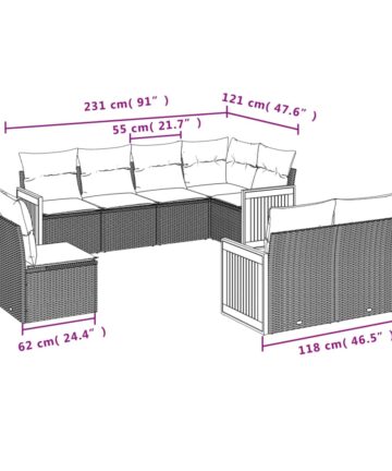 8-tlg. Garten-Sofagarnitur mit Kissen Schwarz Poly Rattan