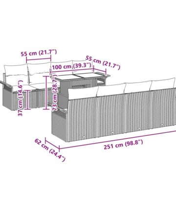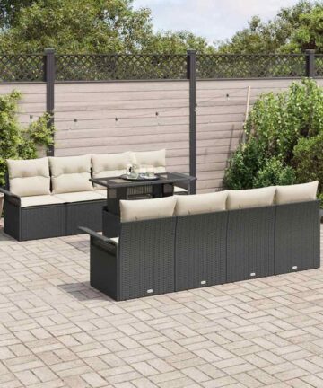 Dieses Garten Sofa Set verwandelt deinen Außenbereich in eine coole Chill-Out-Zone. Aus hochwertigem Poly-Rattan und weichen Kissen, vereint es Stil mit praktischen Vorteilen für draußen und ist ideal für Familientreffen, Grillpartys oder einfach zum Chillen an einem sonnigen Tag. Stylisches Design: Die moderne Optik schafft eine einladende Atmosphäre und macht deine Terrasse oder deinen Balkon zu einem gemütlichen Platz. Klare Linien und das angesagte Farbschema machen jeden Außenbereich schöner. Bequeme Sitzgelegenheiten: Platz für bis zu sechs Personen mit abnehmbaren Schaumkissen, die maximalen Komfort bieten. Genieß die Zeit im Freien und mach’s dir gemütlich. Haltbarkeit: Hergestellt aus wetterfestem Poly-Rattan, hält dieses Sofa-Set den Elementen stand. Genieß seinen Charme und seine Stabilität durch alle Jahreszeiten, egal ob im Garten oder auf dem Balkon. Einfache Pflege: Die Kissenbezüge lassen sich abnehmen, sodass sie leicht gewaschen werden können und dein Sofa immer frisch aussieht. Praktisch für den Außenbereich, mit Kissen, die Stil und Komfort bieten. Vielseitige Verwendung: Ideal für Terrassen, Gärten und Balkone, passt sich allem an. Umstellen ist ganz einfach, ob zum Chillen oder für ein formelles Essen.