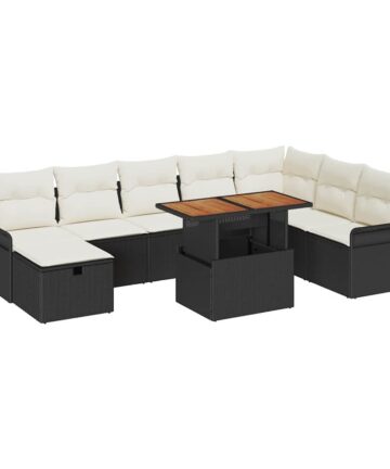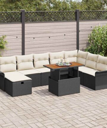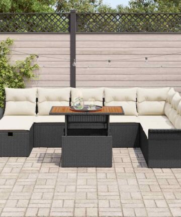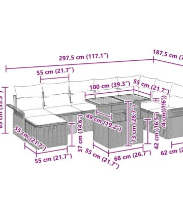 Dieses Garten Sofa Set ist eine schicke und praktische Möglichkeit, deinen Außenbereich aufzupeppen. Mit bequemen Kissen und elegantem Design hebt es die Stimmung deines Gartens und bietet einen Ort zum Entspannen und Sozialisieren. Dieses Set bietet Platz für bis zu 8 Personen – perfekt für Familientreffen oder Freunde einladen. Genügend Sitzplätze lassen jeden plaudern und entspannen. Die praktische Stauraumfunktion sorgt dafür, dass du Kissen oder andere Dinge einfach verstauen kannst, um deinen Außenbereich ordentlich zu halten. Das moderne Design passt zu jeder Stimmung und wertet Balkone und Terrassen auf, während es sicherstellt, dass sich jeder wohlfühlt. Das strapazierfähige Poly Rattan macht die Möbel wetterfest und behält gleichzeitig ihren stylischen Look. Die kuscheligen Kissen bieten gemütliche Sitzplätze und machen deinen Außenbereich einladend für stundenlangen Genuss.