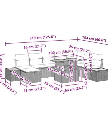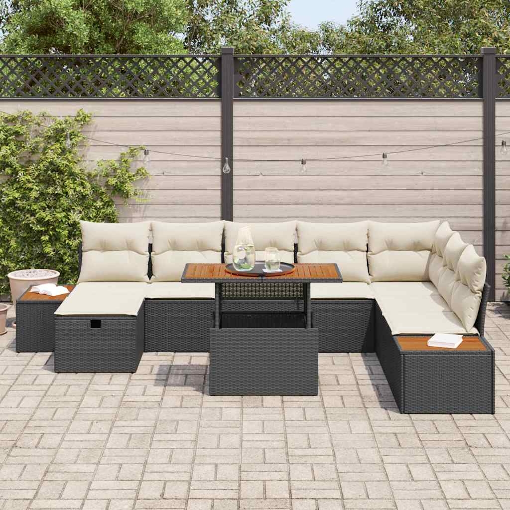 Dieses Garten Sofa Set macht das Loungen im Freien viel cooler und praktischer. Es bietet Platz für viele Gäste und sorgt für eine einladende Atmosphäre. Geräumige Sitzgelegenheiten: Passt bequem für acht Personen, perfekt für Outdoor-Partys oder gemütliche Zusammenkünfte. Praktischer Stauraum: Jedes Stück hat Stauraum für Kissen oder Gartenutensilien, ordentlich und funktional. UV-beständiges Material: Hergestellt aus robustem Rattan und Polyester, bleibt es stilvoll und strapazierfähig. Bequeme Kissen: Dicke Kissen bieten besten Komfort zum Entspannen und Genießen. Moderner Stil: Das zeitgemäße Design ergänzt jede Terrasse oder Balkon und bleibt ein echter Hingucker.