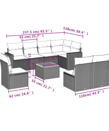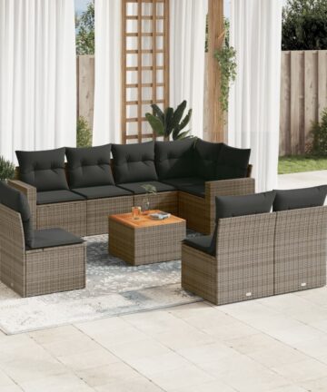 Diese Garten-Sofagarnitur ist die perfekte Ergänzung zu deinem Garten, deiner Terrasse oder deinem Innenhof. Sie bietet einen bequemen und einladenden Platz, um mit Familie und Freunden zu plaudern oder dich einfach nur zu entspannen und das Leben im Freien zu genießen. Langlebiges Material: PE-Rattan, auch als Poly Rattan bekannt, ist ein robustes, pflegeleichtes synthetisches Material, das die Optik von natürlichem Rattan aufweist. Es kennzeichnet sich durch ein geringes Eigengewicht und lässt sich einfach reinigen. Aufgrund seiner Haltbarkeit und Witterungsbeständigkeit wird es häufig bei der Herstellung von Gartenmöbeln verwendet.Bequemes Sitzerlebnis: Dieser Gartensessel mit dick gepolsterten Kissen bietet ein angenehmes Sitzgefühl.Stabile und pflegeleichte Tischplatte: Dieser Gartentisch besitzt eine Tischplatte aus Akazienholz, die robust und langlebig ist und sich leicht mit einem feuchten Tuch reinigen lässt.Abnehmbarer und waschbarer Bezug: Diese Sitzkissen verfügen über abnehmbare Bezüge für einfaches Waschen und Pflegen.Modulares Design: Dank des modularen Designs lassen sich die Gartenmöbel völlig flexibel und einfach umstellen, um deinen Außenbereich ganz individuell zu gestalten. Gut zu wissen:Wir empfehlen dir, deine Gartenmöbel mit einer wasserdichten Hülle zu schützen, um lange Zeit eine ansprechende Optik aufzuweisen.
