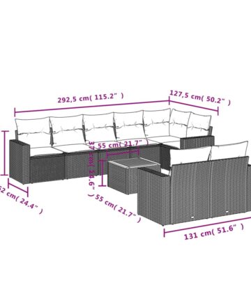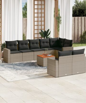 Diese Garten-Sofagarnitur ist die perfekte Ergänzung zu deinem Garten, deiner Terrasse oder deinem Innenhof. Sie bietet einen bequemen und einladenden Platz, um mit Familie und Freunden zu plaudern oder dich einfach nur zu entspannen und das Leben im Freien zu genießen. Langlebiges Material: PE-Rattan, auch als Poly Rattan bekannt, ist ein robustes, pflegeleichtes synthetisches Material, das die Optik von natürlichem Rattan aufweist. Es kennzeichnet sich durch ein geringes Eigengewicht und lässt sich einfach reinigen. Aufgrund seiner Haltbarkeit und Witterungsbeständigkeit wird es häufig bei der Herstellung von Gartenmöbeln verwendet.Bequemes Sitzerlebnis: Dieser Gartensessel mit dick gepolsterten Kissen bietet ein angenehmes Sitzgefühl.Stabile und pflegeleichte Tischplatte: Dieser Gartentisch besitzt eine Tischplatte aus Akazienholz, die robust und langlebig ist und sich leicht mit einem feuchten Tuch reinigen lässt.Abnehmbarer und waschbarer Bezug: Diese Sitzkissen verfügen über abnehmbare Bezüge für einfaches Waschen und Pflegen.Modulares Design: Dank des modularen Designs lassen sich die Gartenmöbel völlig flexibel und einfach umstellen, um deinen Außenbereich ganz individuell zu gestalten. Gut zu wissen:Wir empfehlen dir, deine Gartenmöbel mit einer wasserdichten Hülle zu schützen, um lange Zeit eine ansprechende Optik aufzuweisen.