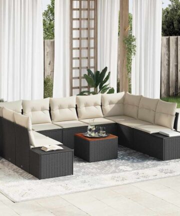 Dieses modulare Gartenmöbelset bietet eine tolle Mischung aus modernem Stil und praktischen Funktionen. Es ist für das Leben im Freien gedacht und sieht das ganze Jahr über hervorragend aus. Mit seinem eleganten Geflecht passt es perfekt in deinen Garten oder auf die Terrasse. Ob du Freunde bewirtet oder einfach einen ruhigen Moment genießt, dieses vielseitige Set bringt Stil in jeden Außenbereich und eignet sich super für jede Menge Spaß im Freien. Materialien: Das Set besteht aus Poly-Rattan, pulverbeschichtetem Stahl und massivem Akazienholz. Das Poly-Rattan hält UV-Licht stand, sodass die Farbe lebendig bleibt. Die pulverbeschichteten Stahlrahmen sind rostbeständig und langlebig. Akazienholz sorgt für eine natürliche, einladende Atmosphäre. Enthaltene Komponenten: Das Set umfasst 5 Mittelsofas, 2 Ecksofas und 2 Stühle, alle mit viel wasserdichtem Stauraum für Kissen und andere Dinge. Ein passender Gartentisch ist auch dabei, der das Verstauen von Gartenaccessoires zum Kinderspiel macht. Merkmale / Funktionen / Design: Das modulare Design erlaubt dir, verschiedene Sitzanordnungen für kleine oder große Treffen zu wählen. Die verstellbaren Füße sind ideal für unebene Böden, und die UV-beständigen Materialien sorgen dafür, dass das Set in der Sonne gut aussieht. Empfohlene Verwendung: Ideal für Gärten, Terrassen und Balkone, egal ob du eine lebhafte Sommerfeier planst oder einfach einen ruhigen Morgen für dich genießen möchtest. Das flexible Design macht es zu einer großartigen Ergänzung für jeden Außenbereich. Pflege & Wartung: Um deine Möbel in Schuss zu halten, benutze Schutzabdeckungen, wenn sie nicht in Gebrauch sind. Lagere Kissen drinnen, wenn das Wetter schlecht ist, um Feuchtigkeitsschäden zu vermeiden und sie in gutem Zustand zu halten.