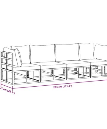 Dieses moderne Loungeset für den Außenbereich passt perfekt in deinen Garten oder auf deine Terrasse. Es hat die ideale Mischung aus Stil, Komfort und Praktikabilität. Mit seinem schlanken und schlichten Design ist es speziell für draußen gedacht und lädt dich dazu ein, dich zurückzulehnen und die Natur zu genießen. Der minimalistische Look passt super zu modernen Geschmäckern und fügt sich nahtlos in jede Außendekoration ein, egal ob du eine lebhafte Gartenparty schmeißt oder einen ruhigen Abend verbringst. Materialien: Das Set hat einen stabilen Aluminiumrahmen, der echt langlebig ist und allen Wetterbedingungen standhält. Die Textilene-Sitze sind comfy und flexibel, und leicht genug, um sie problemlos im Garten oder auf der Terrasse zu bewegen. Enthaltene Komponenten: Du bekommst abnehmbare Outdoor-Kissen aus einem Material, das jedem Wetter standhält. Diese Kissen sind in einem stylischen Anthrazit-Ton gehalten, der deinem Outdoor-Bereich echt chic macht und für Komfort sorgt. Merkmale / Funktion / Design: Dieses Loungeset ist modular, das heißt, du kannst es nach Lust und Laune kombinieren, um deinen Platz optimal zu nutzen. Es ist super anpassungsfähig, ideal für alles von kleinen Familientreffen bis zu großen Feiern. Außerdem verleiht die pulverbeschichtete Oberfläche dem Rahmen ein poliertes Aussehen und steigert sowohl die Haltbarkeit als auch den modernen Look. Empfohlene Verwendung: Perfekt für Gärten und Terrassen verwandelt dieses Loungeset Außenbereiche in tolle Plätze zum Entspannen und Zusammensitzen. Das vielseitige Design ist ideal für viele Anlässe und macht es zur beliebten Wahl sowohl für Privathaushalte als auch Gastronomiebetriebe. Pflege & Wartung: Die Kissenbezüge können zum einfachen Reinigen abgenommen werden. Um das Set gut aussehen zu lassen, solltest du bei schlechtem Wetter eine wasserdichte Abdeckung verwenden, damit es schick und einladend bleibt.