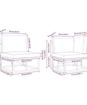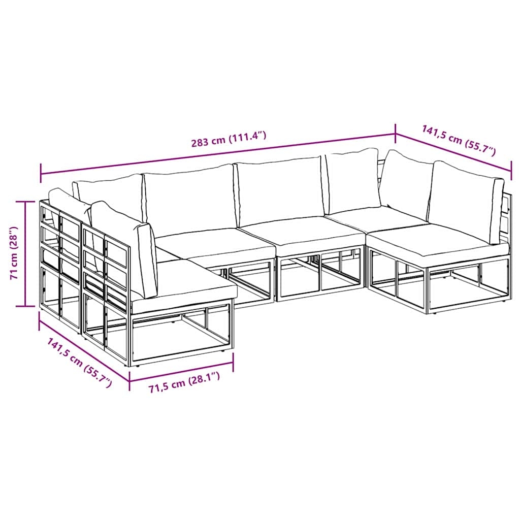 Dieses modulare Gartenmöbel-Set bietet dir praktische und smarte Sitzgelegenheiten für deinen Garten oder deine Terrasse. Mit einem eleganten Design passt es perfekt zu modernen Stilen, zeichnet sich durch klare Linien und ein einfaches Konzept aus. Ideal für gesellige Zusammenkünfte im Freien, lässt es sich mühelos an jede Gelegenheit anpassen. Du wirst die bequemen, abnehmbaren Kissen lieben, die Entspannung angenehm machen und gleichzeitig zeitgemäß aussehen. Der robuste Rahmen aus Aluminium ist langlebig, also eine großartige Ergänzung für deinen Outdoor-Bereich. Dieses Set kombiniert Stil und Funktionalität, perfekt für alle, die ihren Außenbereich aufpeppen möchten. Robuster Aluminiumrahmen Hergestellt aus hochwertigem Aluminium, trotzt der Rahmen allen Wetterbedingungen und bietet langanhaltende Stärke. Leicht und stabil, kannst du ihn einfach umstellen. Eine pulverbeschichtete Oberfläche schützt vor Rost und Korrosion, sodass er lange schick aussieht. Wetterfeste Kissen Die Kissen aus strapazierfähigem Polyester sind bequem und behalten ihre Form und Farbe gut. Mit Reißverschluss lassen sie sich leicht abnehmen und reinigen. Die hochwertigen Materialien sorgen für Komfort und ein ordentliches Aussehen. Flexibles Modulares Design Genieße die Flexibilität des modularen Designs, das dir erlaubt, die Sitzgelegenheiten nach Bedarf zu erweitern und umzustellen. Ob für eine Feier oder für Zeit alleine, das Set passt sich leicht an verschiedene Anlässe an. Das modulare Design ermöglicht es dir, deinem Außenbereich eine persönliche Note zu verleihen. Vielseitige Nutzung im Freien Dieses Möbelset ist für draußen konzipiert und eignet sich perfekt für Gärten, Terrassen und Patios. Die Kombination aus Stil und Funktion macht es ideal für Familientreffen, entspannte Treffen oder ruhige Momente allein. Es gibt deinem Zuhause einen stilvollen Touch und wertet deinen Außenbereich ohne großen Aufwand auf. Pflegehinweise Halte es in Top-Zustand, indem du es regelmäßig mit einem feuchten Tuch abwischst. Wenn du es nicht benutzt, helfen wasserdichte Abdeckungen, die Lebensdauer zu verlängern, indem sie es vor Wettereinflüssen schützen. Diese einfachen Pflegehinweise garantieren ein langlebiges Produkt, ideal für alle, die das Leben im Freien genießen.
