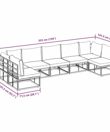- Lieferumfang: 2 x Eck-Sitz, 5 x Mittel-Sitz, 1 x Gartentisch