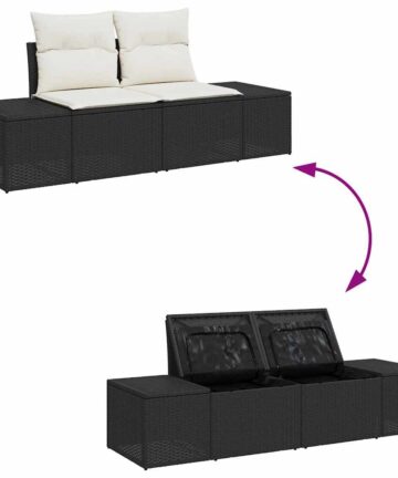 - Lieferumfang: 2 x Mittelplatz mit Stauraum und einer wasserabweisenden Tasche, 1 x Eckplatz mit Stauraum und einer wasserabweisenden Tasche, 2 x Sofa mit Stauraum und einer wasserabweisenden Tasche, 1 x Fußbank mit Stauraum, 1 x Gartentisch