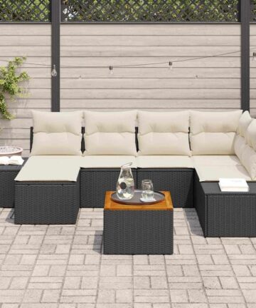 Dieses modulare Outdoor-Möbelset ist ein absoluter Hit, um jeden Garten oder jede Terrasse in eine gemütliche Lounge-Ecke zu verwandeln. Mit einem modernen Look vereint dieses Set Funktionalität und Style, perfekt für alle, die den coolen minimalistischen Vibe lieben. Du kannst die Möbel ganz easy hin und her schieben, um deinen Platz und deine Sitzbedürfnisse zu berücksichtigen, egal ob du einen entspannten Rückzugsort oder eine lebhafte Zusammenkunft suchst. Hochwertige Materialien Dieses Set besteht aus langlebigem, UV-beständigem Poly-Rattan, sodass du weißt, dass es lange hält und pflegeleicht ist. Es hat einen stabilen Rahmen aus pulverbeschichtetem Stahl und eine Oberfläche aus Akazienholz, die sowohl Stil als auch Stabilität bringt. Praktischer Stauraum Jedes Stück hat cleveren Stauraum für Kissen oder Kinderspielzeug, wenn du sie nicht brauchst. So bleibt dein Bereich ordentlich und es gibt mehr Platz für andere Dinge. Super vielseitig Mit verstellbaren Füßen für unebene Böden und einem modularen Aufbau kannst du es für verschiedene Treffen umstellen – perfekt für Familienessen oder entspannte Nachmittage in der Sonne. Für den Außenbereich gemacht Ob entspannt auf der Terrasse an Frühlingstagen oder gesellig in Sommernächten, dieses Outdoor-Set hält UV-Strahlung stand und sieht bei jedem Wetter top aus. Einfache Pflege Halte dieses Set frisch, indem du Abdeckungen nutzt, wenn du es nicht brauchst. Es reicht, es mit mildem Seifenwasser zu reinigen, und es bleibt pflegeleicht und schön wie am ersten Tag.