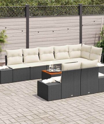 Dieses moderne Outdoor-Sofaset bringt richtig Styl und Praktikabilität zusammen und verwandelt deinen Garten oder deine Terrasse in einen lässigen Rückzugsort. Mit seinen klaren Linien und dem modernen Flair gibt’s deinem Außenbereich einen schicken Touch und macht ihn zum idealen Platz zum Entspannen oder um Freunde zu empfangen. Egal, ob du ein paar Kumpels einlädst oder einfach einen ruhigen Nachmittag genießen willst, dieses Sofaset passt einfach überall und verleiht deinem Außenbereich den coolen Kick. Top Materialien: Das Sofaset ist aus robustem PE-Rattan und stabilem, pulverbeschichtetem Stahl gebaut – perfekt für draußen. Die Materialien sind so gemacht, dass sie dem Wetter standhalten und lange gut aussehen. Viel Stauraum: Es hat 3 Mittel-Sessel, 1 Eck-Sessel und einen Gartentisch, die alle praktischen Stauraum bieten inklusive einer wasserdichten Tasche. So bleibt dein Außenbereich ordentlich und aufgeräumt. Verstellbarer Komfort: Die verstellbaren Füße machen’s stabil, egal wo du es aufstellst, und das bequeme Design sorgt dafür, dass Entspannen super easy ist. Du kannst die Anordnung perfekt an deinen Garten oder deine Terrasse anpassen. Für jede Jahreszeit: Ideal für sonnige Tage im Frühling und Sommer. Das Set verwendet UV-beständige Materialien, die in Topform bleiben und wird dein Lieblingsplatz für Familientreffen oder coole Partys. Einfache Pflege: Zieh einfach die Abdeckung drauf, wenn’s nicht in Gebrauch ist, damit es länger gut aussieht. Das solide Design ist clever für Entspannung und Langlebigkeit.