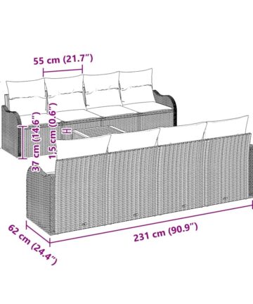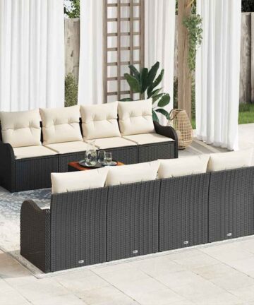 Dieses modulare Outdoor-Sofaset ist eine coole und praktische Sitzlösung für deinen Garten oder deine Terrasse. Die schlanke, quadratische Form und die gewebte Textur machen es zur perfekten Wahl für jeden Außenbereich. Es lädt dich ein, dich zurückzulehnen und zu relaxen. Du kannst die Teile nach Belieben kombinieren, um deinen persönlichen Stil zu finden. Es ist für draußen gedacht und hält den Frühjahrs- und Sommerwetterbedingungen stand, während es jedem offenen Raum einen stylishen Touch verleiht. Materialien: Hergestellt aus hochwertigem PE-Rattan, pulverbeschichtetem Stahl und massivem Akazienholz, verbindet dieses Set Langlebigkeit mit Stil. Jedes Material wurde sorgfältig ausgewählt, um den Bedingungen im Freien standzuhalten – von intensiven UV-Strahlen bis zu plötzlichen Wetterwechseln, damit du lange Freude daran hast. Enthaltene Komponenten: Das Set umfasst vier zentrale Sitze und zwei Armlehnen, beide mit Stauraum für zusätzlichen Komfort. Außerdem gibt’s einen passenden Gartentisch. Jeder Sitz hat eine clevere wasserabweisende Tasche, um deine Dinge trocken und geschützt zu halten. Merkmale / Funktion / Design: Das modulare Design erlaubt dir, ganz nach Bedarf einzigartige Sitzarrangements zu schaffen. Verstellbare Füße passen sich an unterschiedliche Bodenhöhen an, und die UV-beständigen Materialien sorgen dafür, dass es auch in der Sonne lange schön bleibt, was dieses Set zu einer top Wahl für viele Outdoor-Nutzungen macht. Empfohlene Verwendungen: Dieses vielseitige Stück ist ideal für deine Garten- und Terrassenaktivitäten, geeignet für alles, vom entspannten Sonnenbaden bis hin zu kleinen Treffen mit Freunden und Familie. Es ist nicht nur praktisch, sondern auch ein echter Blickfang in deinem Außenbereich. Pflege & Wartung: Damit es immer gut aussieht, solltest du es abdecken, wenn du es nicht nutzt, um es vor schlechtem Wetter zu schützen. So bleibt alles, vom Rahmen bis zu den Kissen, das ganze Jahr über in Topform, und du hast lange Spaß daran.