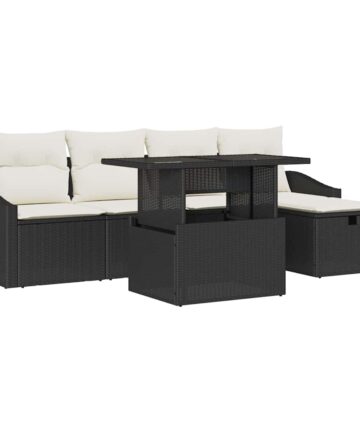 Garten-Sofa-Set mit Kissen 6 pcs Schwarz Poly Rattan