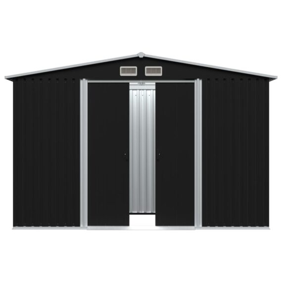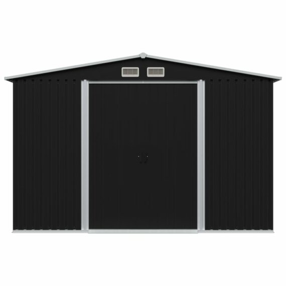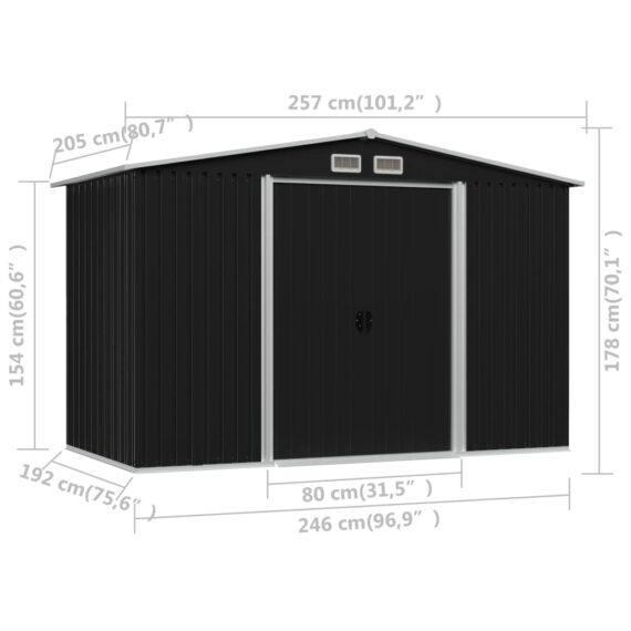 Dieser Gartenschuppen ist perfekt für die Lagerung einer Vielzahl von Werkzeugen und Geräten. Dieser Geräteschuppen ist mit Belüftungsöffnungen ausgestattet, die eine hervorragende Belüftung gewährleisten und die Ansammlung von Feuchtigkeit und Gerüchen im Inneren verringern. Die Doppelschiebetüren vorne ermöglichen einen einfachen Ein- und Ausstieg. Dank des korrosionsbeständigen verzinkten Stahls ist der Geräteschuppen robust, langlebig und stabil. Es enthält auch ein Stahlfundament, das zusätzliche Stabilität verleiht. Die vorgeschnittenen, vorgebohrten Teile und die mitgelieferte Bedienungsanleitung tragen zu einer schnellen und einfachen Montage bei.