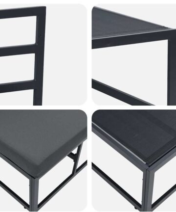 Suchst du nach einem Möbelstück, das deinem Außenbereich etwas Klasse verleiht? Dieses Set ist genau das Richtige! Es ist sowohl schick als auch praktisch und wurde designed, um die moderne Atmosphäre deiner Terrasse, deines Gartens oder Balkons zu ergänzen. Mit einem eleganten Design und klaren Linien ist es perfekt, um Freunde zu bewirten oder einfach nur abzuhängen. Aluminium-Konstruktion: Dieses Set ist aus robustem Aluminium, also stabil und langlebig. Es wird nicht rosten oder korrodieren, was es zur idealen Wahl für den Außenbereich macht. Die schlichte Oberfläche passt zu vielen Stilen, ohne zu aufdringlich zu wirken. Enthaltene Komponenten: Jedes Teil hat einen soliden Rahmen und genug Platz für komfortables Sitzen. Das Design lässt dich in verschiedenen Positionen entspannen, egal ob du eine Feier schmeißt oder einfach nur chillst. Funktionale Merkmale: Es ist leicht, sodass du die Möbel unkompliziert bewegen kannst. Das platzsparende Design funktioniert sowohl auf kleinen Terrassen als auch auf großen Veranden, was es vielseitig für jeden Außenbereich macht. Ideale Nutzung: Ob auf Balkonen, Terrassen oder in Gärten – dieses Möbel-Set passt überall hin. Egal, ob du es zu Hause im Garten, auf einer Hotelterrasse oder in einem gewerblichen Bereich nutzt, es ist eine flexible Option für Gastronomen und Hausbesitzer. Pflege und Wartung: Um immer toll auszusehen, solltest du eine wasserdichte Abdeckung benutzen, wenn das Wetter schlecht ist. Mit einem trockenen Tuch abwischen sorgt dafür, dass die Oberfläche makellos bleibt, sodass du es über viele Saisons hinweg genießen kannst.