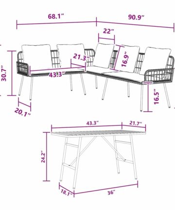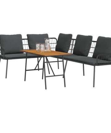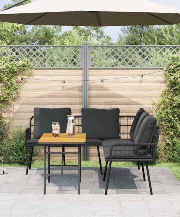 Dieses Garten Sofa Set vereint Stil und Komfort und ist eine super Wahl für Außenbereiche. Sein schlankes Design und die flexible Anordnung passen perfekt auf Balkone, Terrassen oder in Wintergärten und bieten viel Platz für Entspannung oder gesellige Zusammenkünfte. Robuste Bauweise: Das Garten Sofa Set besteht aus hochwertigen Materialien und sorgt dafür, dass es draußen hält. Mit einem stabilen Stahlrahmen und bequemen synthetischen Poly-Rattan-Sitzgelegenheiten sieht es stylisch aus. UV-Beständigkeit: Dank UV-beständiger Materialien behält dieses Möbelstück auch nach starker Sonneneinstrahlung sein tolles Aussehen. Perfekt für sonnige Plätze, es wird nicht verblassen oder abnutzen. Modernes Design: Der schicke, moderne Look mit matter Oberfläche wertet jeden Bereich auf und ist ein eleganter Bestandteil deines Außenbereichs. Seine klaren Linien und stylischen Formen werden deine Gäste sicher beeindrucken. Komfort: Jeder Sitz hat weiche Polyesterkissen für extra Komfort. Diese Kissen sind perfekt zum Entspannen und machen das Loungen im Freien ganz einfach. Einfacher Pflege: Dieses Set ist leicht zu reinigen; einfach mit einem feuchten Tuch abwischen. So bleibt mehr Zeit, um deinen Außenbereich zu genießen.