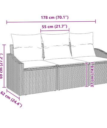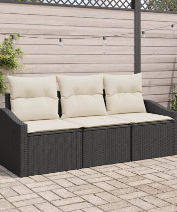 Dieses 3-teilige Garten-Sofa-Set ist eine stylische Wahl für Sitzgelegenheiten im Freien und perfekt, um deinen Garten oder deine Terrasse stilvoll zu genießen. Mit einem modernen Look in Beige und Schwarz hilft dir dieses Außen-Sofa, einen chilligen Platz zu schaffen, der genügend Platz für drei bietet – ideal für entspannte Tage mit Freunden oder der Familie. Robuster Rattanrahmen: Hergestellt aus starkem Rattan ist dieses Sofa-Set so designed, dass es allen Wetterverhältnissen standhält und dabei gut aussieht. Du kannst dich entspannt zurücklehnen, weil es für die Ewigkeit gebaut ist. Komfortable Kissen: Die weichen Polyesterkissen fühlen sich super an und haben Reißverschlüsse für eine einfache Reinigung, damit sie das ganze Jahr über toll aussehen. Schaffe eine gemütliche Atmosphäre im Freien. Moderner Stil: Sein schlankes Design passt perfekt zu jeder Garten- oder Terrassendekoration und bringt frischen Wind in deinen Außenbereich. Optimal für alle, die den modernen Stil schätzen. Vielseitige Nutzung: Ideal für Terrassen, Balkone oder Gärten ist dieses Sofa-Set perfekt für jede Gelegenheit, egal ob du eine entspannte Familienfeier organisierst oder einfach in Ruhe ein Buch lesen möchtest. Einfache Montage: Wird mit einer einfachen Aufbauanleitung geliefert – du brauchst nur zwei helfende Hände und einen Schraubendreher. Schnell aufbauen und direkt loslegen!