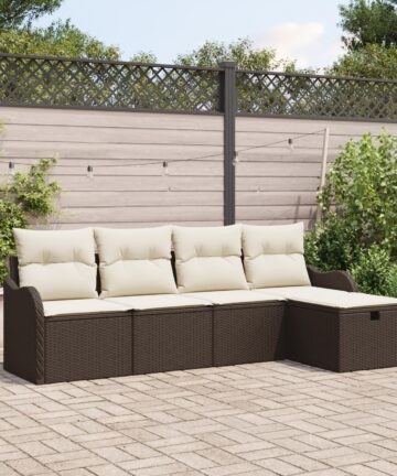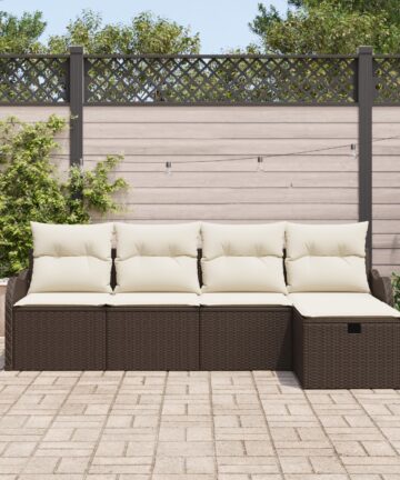 Dieses modulare Ecksofa-Set dreht sich alles um Komfort und Stil, perfekt für entspannte Stunden draußen. Ideal für deinen Balkon, deine Terrasse oder deinen Garten, passen die schönen Braun- und Cremetöne toll zu jeder Außendekoration und bieten bequeme Sitzmöglichkeiten für bis zu vier Personen. Handgefertigte Handwerkskunst: Jedes Stück des Sofa-Sets wird von Hand aus strapazierfähigem Poly-Rattan gefertigt, das stilvoll aussieht und stark ist. Die Textur sorgt für einen coolen visuellen Effekt und bringt handwerkliches Geschick mit ein, was deinem Setup eine besondere Note verleiht. Modulares Design: Der modulare Stil erlaubt es dir, deine Sitzanordnung flexibel zu gestalten. Das macht es ideal für kleine Zusammenkünfte oder große Feiern und passt sich deinem sozialen Events an. Komfortable Polsterung: Die weichen Kissen mit UV-beständigem Stoff bieten dir maximalen Komfort für faule Nachmittage. Die abnehmbaren Kissenbezüge mit Reißverschluss machen die Pflege kinderleicht und sorgen dafür, dass alles gut aussieht. Wetterfest: Hergestellt aus wetterbeständigen Materialien bleibt dieses Sofa-Set den ganzen Sommer funktional und stylisch, perfekt geeignet für jede Outdoor-Umgebung. Geräumige Sitzkapazität: Es ist groß genug für vier Erwachsene und bietet den perfekten Platz zum Entspannen für Familie und Freunde, was es super für Zusammenkünfte und Al-Fresco-Dinner macht.