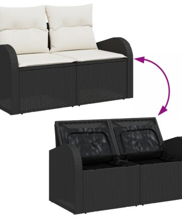Dieses Outdoor-Sofa-Set ist stylisch und bequem, perfekt, um die frische Luft zu genießen. Es passt super zu jedem Outdoor-Stil und lässt sich so anordnen, wie du willst, um Platz und Wohlbefinden zu maximieren. Modularität: Die flexible Sitzanordnung erlaubt verschiedene Arrangements für jedes Treffen oder Chill-Sitzung und macht es vielseitig für kleine und große Außenbereiche, was dein Outdoor-Erlebnis verbessert. Haltbare Verarbeitung: Hergestellt aus UV-beständigem Poly-Rattan und unterstützenden Polyesterkissen kann dieses Sofa-Set verschiedene Wetterbedingungen aushalten und ist farbecht. Diese Qualität sorgt dafür, dass es gut aussieht und gleichzeitig Komfort im Freien bietet. Ultimativer Komfort: Jedes Kissen ist mit weichem Schaumstoff gefüllt, für perfekten Komfort auch bei längerem Sitzen. Ideal zum Entspannen und perfekt, um nach einem langen Tag abzuschalten oder Zeit mit deinen Liebsten zu genießen. Verstellbare Füße: Die verstellbaren Füße halten es stabil auf unebenen Oberflächen, sodass du es überall aufstellen kannst. Dieses praktische Feature sorgt dafür, dass du egal wo, bequem sitzt. Leichte Pflege: Die Materialien sind einfach zu reinigen; nimm einfach ein feuchtes Tuch und mach es frisch. Dieser pflegeleichte Stil lässt dich deine Zeit im Freien unbesorgt genießen und gibt dir mehr Zeit zum Entspannen.