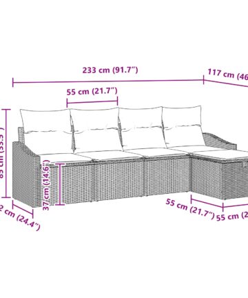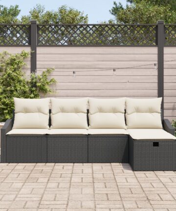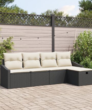 Das 5-teilige Garten Sofa Set ist genau das, was du brauchst, um dein Outdoor-Erlebnis aufzuwerten, indem es Eleganz und Funktionalität mit seinem stylischen Poly-Rattan-Design verbindet. Perfekt für Balkone und Patios, ist dieses schicke Set ideal, um mit Familie und Freunden Zeit zu verbringen und durch die bequemen Kissen viel Komfort bietet, so dass Entspannung und Geselligkeit kein Problem sind. Die wetterfesten Materialien in diesem Garten Sofa Set sorgen für eine lange Haltbarkeit bei allen Wetterbedingungen. Hochwertiges Poly-Rattan ist feuchtigkeits- und verblassungsresistent, sodass du lange Freude an diesen Möbeln hast. Es bietet Platz für bis zu 5 Personen, was es perfekt für Familientreffen, BBQs und entspannte Tage im Freien macht. In jedem Stück gibt es Stauraum, der Kissen und Outdoor-Zubehör sicher verstaut und so Unordnung in deinem Raum vermeidet. Das moderne Aussehen gibt deinem Patio oder Garten einen tollen Charme und schafft eine einladende Atmosphäre für Gäste sowie einen trendigen Outdoor-Wohnbereich. Großzügige Abmessungen sorgen dafür, dass jeder Platz bequem ist und sind so gestaltet, dass deine Zeit im Freien super angenehm und entspannend wird.