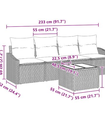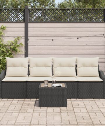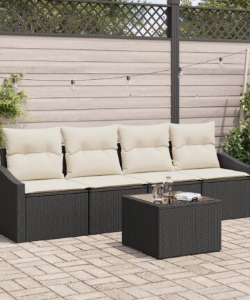 Dieses 5-teilige Garten Sofa Set ist für das Leben im Freien gemacht und bringt moderne Vibes zusammen mit Praktikabilität. Der elegante, strukturierte Poly Rattan Rahmen sowie die bequemen Kissen sorgen für ein frisches Gefühl und genug Komfort für vier Personen. Es ist eine super Wahl, um deine Terrasse oder deinen Garten aufzupeppen. Bequeme Sitzgelegenheit: Dieses Sofa Set hat hochwertige Kissen, die dir einen super bequemen Platz bieten – perfekt für lange Tage, an denen du deine Freunde draußen unterhältst. Die Kissen sind weich und gleichzeitig stützend, damit du entspannt sitzen kannst. Wetterfestes Design: Hergestellt aus strapazierfähigen Materialien, darunter UV-beständiger Poly Rattan, ist dieses Set darauf ausgelegt, schlechtem Wetter zu trotzen und dabei gut auszusehen. Du kannst es draußen lassen, ohne dir Sorgen um Verfärbungen oder Schäden machen zu müssen. Stylischer Tisch inklusive: Neben dem Sofa bekommst du zwei Armsofas, zwei Mittelsessel und einen eleganten Kaffeetisch. Dieses bequeme Setup ist perfekt für Drinks und gemütliche Plauderrunden. Clevere Gestaltung: Mit seinem modernen Look hebt dieses Sofa Set die Stimmung in jedem Außenbereich. Ideal für Balkone, Gärten oder Patios, ist es ein einladender Ort für ein gutes Buch oder ein kleines Treffen. Einfache Montage: Es kommt mit allen Teilen und klaren Montageanleitungen, sodass zwei Personen es problemlos mit nur einem Schraubendreher zusammenbauen können. Du kannst es fix erledigen und bald deinen Außenbereich genießen.