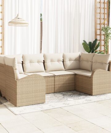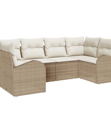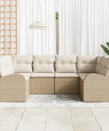 Dieses Garten Sofa Set hat ein modernes modulares Design und ist perfekt für deine Außenbereiche. Es ist super für entspannte Zusammenkünfte oder chillige Momente. Die frischen Beige- und Cremefarben machen es nicht nur praktisch, sondern werten jeden Bereich auf und schaffen eine gemütliche Atmosphäre, egal ob auf dem Balkon, der Terrasse oder im Garten. Robuster Rahmen: Aus synthetischem Poly-Rattan gefertigt, bietet langanhaltende Leistung bei verschiedenen Wetterbedingungen. Bequeme Kissen: Mit weichen Polyesterkissen, die dein Entspannungsgefühl heben, ideal zum Rumhängen. Vielseitige Nutzung: Perfekt für Außen-Sitzgelegenheiten und entspannte Zusammenkünfte, bietet einen bequemen Platz für Familie und Freunde. Einfache Pflege: Kissen haben Reißverschlüsse für einfaches Abnehmen und Reinigen und garantieren Stil und Hygiene. Großzügige Abmessungen: Das Sofa-Set ist für angenehme Sitztiefe und -breite konzipiert, sodass bis zu 6 Personen bequem Platz finden.