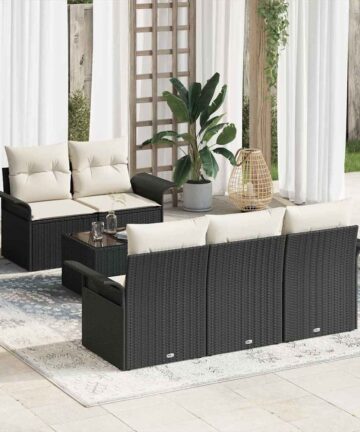 Das stylische Garten Sofa Set verwandelt jeden Außenbereich in eine stilvolle Oase. Das Set besteht aus robustem Poly-Rattan und hat sechs Teile, die Praktikabilität und schickes Design verbinden – perfekt für Terrassen, Gärten oder Balkone. Stylisches und modernes Design: Der schlanke Look und die klaren Linien dieses Garten Sofa Sets werten jeden Außenbereich auf und bringen eine luxuriöse Atmosphäre. Bequeme Kissen: Dicke, weiche Kissen bieten tollen Komfort – perfekt für entspannte Zusammenkünfte. Robuste Konstruktion: Hergestellt aus spritzwasserfestem Poly-Rattan, hält dieses Sofa Set auch schlechtem Wetter stand und ist für die Ewigkeit gemacht. Einfache Pflege: Die abnehmbaren Kissenbezüge sind super leicht zu reinigen, damit alles frisch bleibt. Vielseitige Verwendung: Perfekt für jede Art von Treffen – ideal für Outdoor-Spaß oder einfach zum Entspannen in einem ruhigen Eckchen.