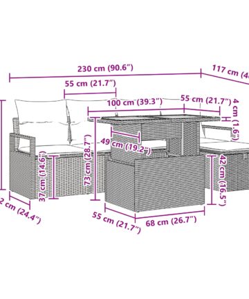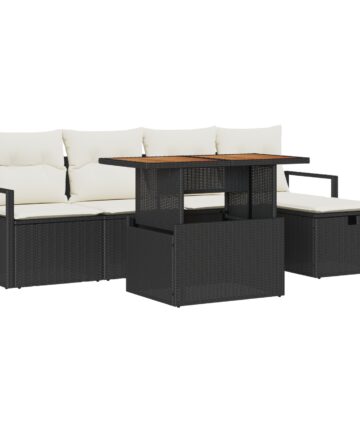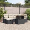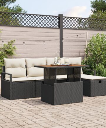 Das 6-teilige Garten-Sofa-Set vereint modernen Stil mit praktischen Sitzmöglichkeiten für draußen und ist perfekt für entspannte und gesellige Anlässe. Hergestellt aus robustem Poly-Rattan und weichen cremefarbenen Kissen, sieht es klasse aus und bleibt dabei bequem und wetterfest. Ideal für Balkone, Gärten und Terrassen. Stylisches Design: Dieses Garten-Sofa-Set mit seinen schlanken Linien ist eine tolle Ergänzung für jeden Außenbereich, passt super zu modernen Dekoren und hebt die gesamte Atmosphäre an. Bequeme Sitzplätze: Die weichen Outdoor-Kissen auf jedem Teil sorgen für maximalen Komfort für entspannende Nachmittage, Sommerpartys oder ruhige Nächte draußen. Die Kissen bestehen aus Polyester und bieten gut Unterstützung, während du die Sonne genießt. Wetterfest: Hergestellt aus hochwertigem Poly-Rattan und pulverbeschichtetem Stahl, bleibt dieses Set wind- und wetterfest und sorgt dafür, dass es lange hält. Modular zusammenstellbar: Die Teile lassen sich ganz einfach umstellen, um den Raum ideal zu nutzen und die perfekte Anordnung zu schaffen, ob gemütlicher Gesprächsbereich oder großzügiger Loungebereich. Einfach sauber zu halten: Die abnehmbaren Kissenbezüge mit Reißverschlüssen machen das Reinigen easy, und das gesamte Set kann leicht abgewischt werden, um es frisch zu halten, damit du mehr genießen und weniger stressen kannst.
