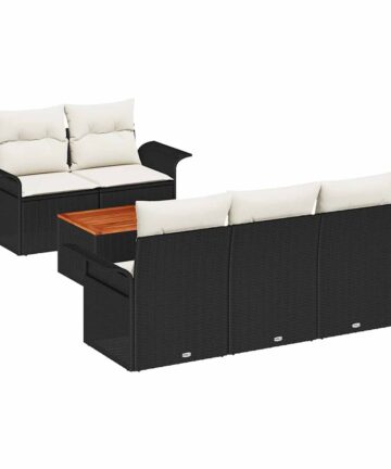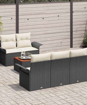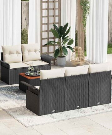 Dieses Garten Sofa Set setzt einen stylischen Akzent in deine Außenbereiche und ist perfekt für gemütliche Abende mit Freunden oder Familie. Das moderne Design verbindet Praktikabilität mit einem ansprechenden Aussehen, ideal für Balkone, Gärten oder Patios. Robuste Bauweise: Aus hochwertigem Poly Rattan gemacht, hält dieses Set den Elementen stand und sieht dabei super stylisch aus – perfekt für langfristigen Außeneinsatz. Bequeme Kissen: Die weichen Kissen lassen dich ewig entspannen, was deine Entspannungszeiten oder geselligen Zusammenkünfte viel angenehmer macht. Stylishes Aussehen: Mit seinem eleganten Schwarz und den cremefarbenen Akzenten passt dieses Sofa Set super in verschiedene Außenbereiche und bringt die Dekoration deines Gartens oder Balkons zum Strahlen. Einfache Pflege: Die abnehmbaren Kissenbezüge mit Reißverschluss zur leichten Reinigung sorgen dafür, dass das Set mit minimalem Aufwand frisch bleibt. Geräumige Dimensionen: Entworfen für bis zu sechs Personen, bietet das große Design des Sofas jedem genügend Platz, um die Natur zu genießen.