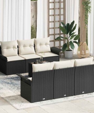 Das Garten Sofa Set ist perfekt zum Chillen und Essen im Freien und bringt einen modernen Flair auf jeden Balkon oder Patio. Mit einem coolen Schwarz und Creme Farbdesign und gewebtem Look ist es ein gemütlicher Platz für entspannte Zeiten mit Familie und Freunden. Modulares Design: Die modulare Natur dieses Sofa Sets ermöglicht es dir, es ganz nach deinen Wünschen einzurichten, sodass es perfekt in deinen Außenbereich passt. Ob auf einem kleinen Balkon oder einem großen Garten, es passt überall. Wetterfest: Hergestellt aus robustem Poly-Rattan, kann dieses Set verschiedenen Wetterbedingungen im Freien standhalten und sieht dabei immer gut aus. Es wird in der Sonne nicht schnell verblassen oder auseinanderfallen. Bequemes Sitzen: Jedes Teil kommt mit weichen Kissen aus bequemem Polyesterstoff, die dir tollen Komfort für längere Entspannungsphasen bieten. Ihr Kastendesign sieht stylish aus und sorgt für eine gute Unterstützung. Einfache Pflege: Dank der abnehmbaren und waschbaren Kissenbezüge ist dieses Gartenmöbel Set super leicht zu reinigen. Die robusten Materialien machen es auch pflegeleicht – genau das Richtige für einen stressigen Alltag. Vielseitige Nutzung: Ideal für das Essen im Freien, Partys oder einfach zum Chillen – dieses Garten Sofa Set bringt gute Stimmung in deine geselligen Zusammenkünfte. Es bietet Platz für bis zu 6 Personen und ist eine tolle Ergänzung für jede Outdoor-Veranstaltung.
