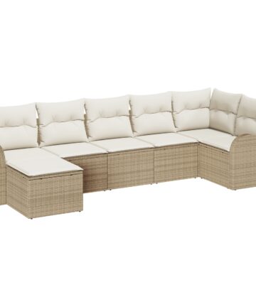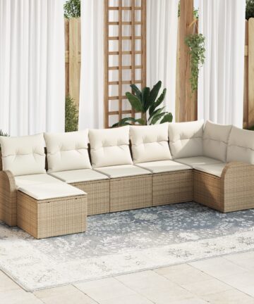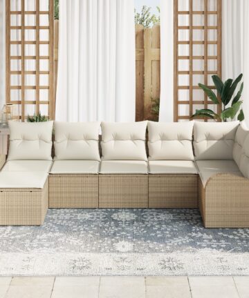 Dieses modulare Outdoor-Schnittsofa-Set bringt einen modernen Stil und bequeme Sitze mit, ideal für 7 Personen. Die schicken beige- und cremfarbenen Farben passen gut in die meisten Outdoor-Umgebungen und sind der perfekte Ort, um sich zu entspannen und Spaß mit Freunden zu haben. Modulare Konfiguration: Du kannst die Segmente flexibel anpassen, um das Sofa-Set neu zu gestalten und verschiedenen Outdoor-Layouts gerecht zu werden. Diese Flexibilität erhöht die Nutzungsmöglichkeiten und ermöglicht kreative Lösungen für deinen Außenbereich. Robuste Materialien: Hergestellt aus synthetischem Poly-Rattan und wetterfestem Polyester, ist dieses Garten-Sofa sehr stabil. Die UV-beständigen Materialien helfen, die Form und das frische Aussehen des Sofas zu bewahren, sodass es über Jahre hinweg ein Highlight deines Außenbereichs bleibt. Komfortable Eigenschaften: Jeder Sitzbereich hat bequeme Box-Kissen für super Unterstützung. Die Reißverschlüsse sorgen für einfaches Abnehmen und Reinigen der Kissen, sodass Komfort und Praktikabilität Hand in Hand gehen und du deine Entspannung wirklich genießen kannst. Geräumige Größe: Das Sofa hat genug Platz für 7 Personen und ist perfekt für Familientreffen oder entspannte Zusammenkünfte. Die großzügigen Maße sorgen dafür, dass jeder genug Platz hat, um zu relaxen und die frische Luft zu genießen. Einfach zu pflegen: Speziell für den Freiluftgebrauch gemacht, reicht es, mit warmem Wasser drüber zu wischen und es abzudecken, wenn du es nicht benutzt, um es vor den Witterungen zu schützen. Diese einfache Pflege lässt dir mehr Zeit zum Entspannen, ohne dir über die Wartung Gedanken machen zu müssen, was es zu einer praktischen Ergänzung deiner Outdoor-Ausstattung macht.