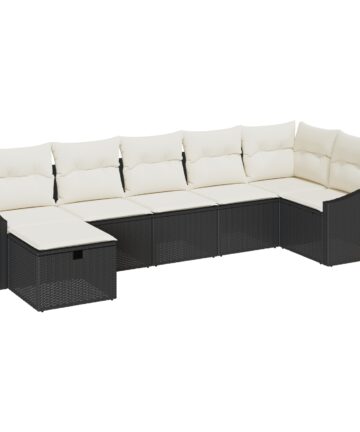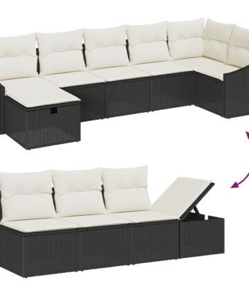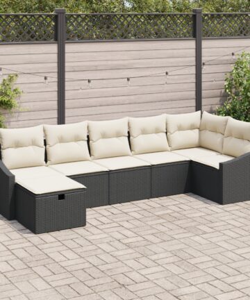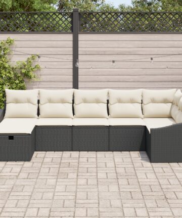 Dieses Outdoor-Sofa-Set macht deinen Garten, Balkon oder deine Terrasse zu einem eleganten und praktischen Ort. Das moderne Design hat eine rechteckige Form und eine strukturierte Poly-Rattan-Oberfläche, während bequeme Kissen für ein tolles Erlebnis sorgen. Perfekt für gesellige Zusammenkünfte oder ruhige Abende zu Hause. Geräumige Sitzgelegenheiten: Mit Platz für bis zu 7 Personen ist dieses Outdoor-Sofa-Set perfekt für gemütliche Abende mit Familie und Freunden beim Grillen oder einfach, um die frische Luft zu genießen. Wetterfester Stoff: Aus hochwertigen, wetterfesten Materialien, damit dein Möbel lange hält. Integrierter Stauraum: Das Sofa hat praktischen Stauraum für deine Outdoor-Kissen und Zubehör, damit alles ordentlich bleibt. Modernes Design: Der coole Stil in Schwarz und Beige passt perfekt zu jedem Outdoor-Dekor und macht deinen Garten zu einer tollen Atmosphäre für deine Gäste. Einfache Pflege: Pflegeleichtes Material sorgt dafür, dass dein Sofa-Set immer gut aussieht.