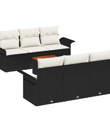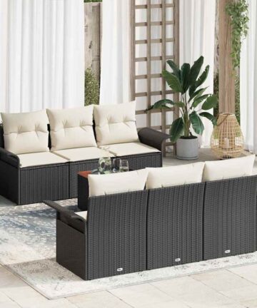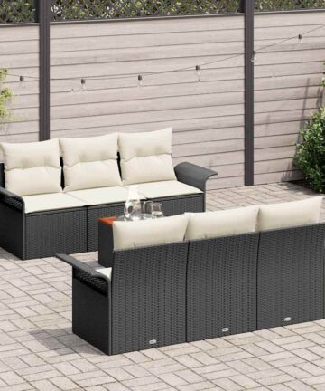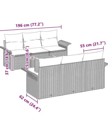 Dieses Garten Sofa Set bringt Style in jeden Außenbereich und bietet den perfekten Mix aus Komfort und Aussehen für gesellige Treffen mit Freunden und Familie. Das moderne Design verbindet mühelos Funktionalität und Stil, und macht deinen Patio oder Garten zum Lieblingsort zum Entspannen. Dieses Garten Sofa Set hat eine stabile Struktur aus hochwertigem Poly-Rattan mit einer matten Oberfläche für einen modernen Look. Sein solides Design sorgt für Langlebigkeit und behält dabei sein elegantes Aussehen. Mit ausreichend Platz bietet dieses Set bequem Platz für bis zu 6 Personen – ideal für Familienfeiern, Sommerpartys oder einfach zum Genießen der Natur mit Freunden. Der moderne Minimalismus passt perfekt in deinen Garten oder Patio und gibt dem Ganzen eine schicke Note. Die glatte Haptik und die dezenten Farben schaffen eine harmonische Atmosphäre im Freien. Im Set sind weiche cremefarbene Kissen enthalten, die das Entspannungsgefühl erhöhen – perfekt für entspannte Nachmittage. Hergestellt aus weichem Polyester sind diese Kissen sowohl bequem als auch schön und machen sie ideal für faule Sommertage. Die Montage ist einfach mit der mitgelieferten Anleitung, sodass du deine neue Gartenlounge sofort einrichten kannst und sie gleich genießen kannst.