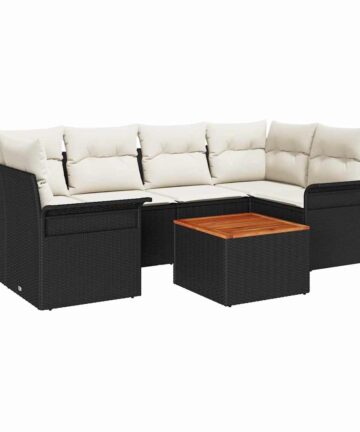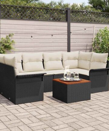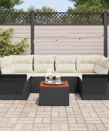 Dieses Garten-Sofa-Set ist bequem und stylisch, ideal für jeden Außenbereich, seien es Balkone oder Terrassen. Mit seinem modernen Design und den klaren Linien schafft es einen einladenden Ort zum Chillen, Essen oder für gesellige Momente. Das modulare Design lässt dich alles nach Lust und Laune aufstellen, ideal für deinen Außenbereich. Jeder Sitz kommt mit bequemen Kissen für entspanntes Chillen. Die wetterbeständigen Materialien sorgen dafür, dass das Sofa-Set lange gut aussieht. Der moderne Stil mit schwarzem Poly-Rattan und cremefarbenen Kissen integriert sich gut in dein Außendekor. Ideal für alle möglichen Anlässe, perfekt zum Essen im Freien und zum gemeinsamen Zeitverbringen mit Familie und Freunden.