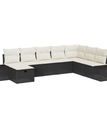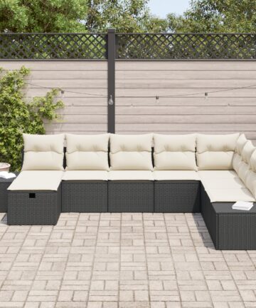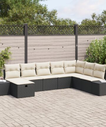 Das 8-teilige Garten-Sofa-Set hat ein modernes Design und verbindet Eleganz mit Praktikabilität. Es eignet sich super für Gartenpartys oder zum Relaxen in der Sonne. Aus robustem Poly Rattan und weichen Polyesterkissen gefertigt, bietet es einen stylischen und bequemen Platz für Familie und Freunde, die sich zusammen entspannen wollen. Modulares Design: Stelle das Sofa einfach um, um es an deinen Außenbereich anzupassen. Bequeme Kissen: Jedes Kissen ist mit Schaumstoff gefüllt für ein entspannendes Lounge-Erlebnis im Freien. Wartungsfreundlich: Die Materialien lassen sich einfach mit einem weichen Tuch und etwas Seife reinigen. Stabiles Gestell: Auf einem soliden Rahmen für starken Halt und Langlebigkeit im Freien gebaut. Stylische Farbkombination: Das auffällige schwarze Rattan mit cremefarbenen Kissen bringt frischen Wind in deine Terrasse.