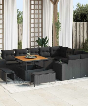 Dieses Poly Rattan Garten-Sofa-Set bringt einen coolen Mix aus modernem Stil und praktischen Komfort mit, perfekt für deinen Außenbereich. Egal ob du eine Sommerparty feierst oder einfach nur chillen willst, dieses Set bietet dir einen bequemen Platz mit seinen klaren Linien und dem flexiblen Design, richtig gut für Gärten und Terrassen. Mit solider Verarbeitung und schickem Look peppt es nicht nur deinen Außenbereich auf, sondern macht das Entspannen dort auch viel angenehmer. Robuste Konstruktion: Das Sofa-Set hat einen stabilen Rahmen aus pulverbeschichtetem Stahl. Es ist für den Außeneinsatz gemacht, und die Pulverbeschichtung schützt es zusätzlich vor dem Wetter – perfekt für sonnige Frühlingstage und im Sommer. Alles fügt sich gut zusammen und sorgt für einen stabilen, stylischen Look. Bequeme Sitzgelegenheiten: Mit weichen Polyesterkissen und bequemen Schaumstoffpolstern dreht sich bei diesem Set alles um entspanntes Sitzen. Das Poly-Rattan umhüllt den Rahmen und sorgt für Gemütlichkeit und Unterstützung, was deine Zeit auf der Terrasse noch angenehmer macht. Es ist die beste Kombination aus Schaum und Rattan für maximale Entspannung. Funktionales Design: Die verstellbare Rückenlehne lässt dich die Sitzposition einfach ändern, ob du dich zurücklehnen oder aufrecht sitzen willst. Dieses flexible Setup mit gebogenen Armlehnen und einem schicken Rücken sieht nicht nur gut aus, sondern bietet auch den Komfort, den du für ein entspanntes Wohlfühlambiente brauchst. Praktischer Stauraum: Der integrierte Stauraum ist ideal für Sachen wie Gartengeräte oder Kissen. Die versteckten Fächer halten das Sofa ordentlich und stylisch, während sie dir einfachen Zugriff ohne Unordnung bieten – super praktisch! Pflege & Wartung: Das Möbel frisch zu halten, ist super einfach. Benutz einfach die abnehmbaren Bezüge zur einfachen Reinigung und wirf sie bei Nichtgebrauch zum Schutz vor Witterungseinflüssen darüber. Ein schnelles Abwischen des Rahmens und der Kissen sorgt dafür, dass sie lange gut aussehen.