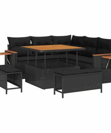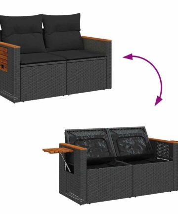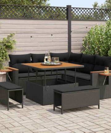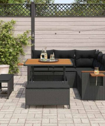 Dieses moderne Garten-Sofa-Set ist perfekt, um deinen Außenbereich in einen gemütlichen Rückzugsort zu verwandeln. Mit seiner coolen Webstruktur und dem minimalistischen Stil bringt es Eleganz in jeden Garten oder auf jede Terrasse. Es ist gemacht für Spaß im Freien und der ideale Platz, um mit Freunden und Familie abzuhängen und die Natur zu genießen. Das schicke Aussehen passt perfekt zur Praktikabilität und eignet sich super für sonnige Nachmittage und kühle Abende. Materialien: Hergestellt aus hochwertigem Poly-Rattan, das robust und stylisch für die Nutzung im Freien ist. Dazu kommt ein stabiler, pulverbeschichteter Stahlrahmen, der sicheren Halt gibt, und die Oberfläche aus Akazienholz sorgt für eine schöne natürliche Note. Enthaltene Komponenten: Kommt mit bequemen, wetterfesten Kissen, Rückenlehnen und Armlehnen aus starkem Poly-Rattan sowie stabilen Stahlbeinen, die Stabilität bieten, egal was passiert. Diese Elemente sorgen für eine einladende Atmosphäre und nachhaltigen Komfort. Features / Funktion / Design: Das modulare Design erlaubt es dir, das Set je nach Bedarf einfach umzustellen und bietet Flexibilität. UV-beständige Materialien verhindern das Verblassen, sodass es das ganze Jahr über top aussieht. Der eingebaute Stauraum bietet praktischen Platz für Kissen und andere Dinge. Empfohlene Verwendung: Ideal für Terrassen, Gärten und andere Außenbereiche – perfekt für Treffen, zum Chillen oder einfach zum Entspannen. Das flexible Design erlaubt es dir, das Set je nach Stimmung und Raum zu gestalten. Pflege und Wartung: Einfach mit einem feuchten Tuch abwischen, wenn nötig. Eine Abdeckung für Außenmöbel verwenden, wenn es nicht wird, um es gut zu halten. Die weichen Kissen solltest du drinnen aufbewahren, wenn das Wetter schlecht ist, damit sie frisch bleiben.