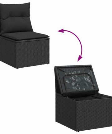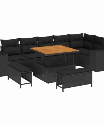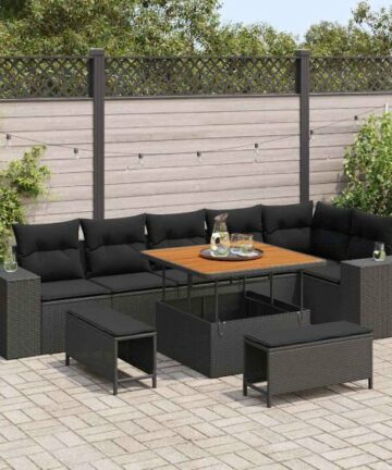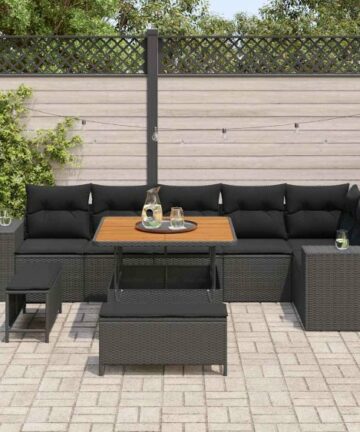 Dieses Poly Rattan Garten-Sofa-Set bringt eine coole und stylische Atmosphäre in jeden Außenbereich. Mit seinem schlanken Design verbindet es Style und Funktion wie von selbst. Die modulare Anordnung macht es leicht, das Set umzustellen, sodass du es für verschiedene Anlässe nutzen kannst. Es besteht aus stabilen, wetterfesten Materialien und ist perfekt für entspannte Stunden im Frühling und Sommer. Haltbare Materialien Hergestellt aus Poly-Rattan, pulverbeschichtetem Stahl und massivem Akazienholz, sieht dieses Sofa-Set top aus und hält lange. Es ist für harten Gebrauch im Freien gemacht, und die Poly-Rattan-Oberfläche verleiht ihm einen stylischen Touch, während der robuste Stahlrahmen zuverlässigen Halt gibt. Das massive Akazienholz bringt eine zeitlose Note in jeden Garten. Herausragende Komponenten Jedes Teil hat seinen Zweck: die gepolsterten Sitze sind super bequem, und die Rücken- und Armlehnen geben dir dank des Poly-Rattans guten Halt. Der pulverbeschichtete Rahmen hat eine matte Oberfläche, die Abnutzung standhält und immer gut aussieht. Mit seinem modularen Design kannst du es nach Belieben für jeden Anlass anpassen. Vielseitige Eigenschaften Verstellbare Füße helfen, es auf unebenem Boden stabil zu halten, und der versteckte Stauraum sorgt dafür, dass alles ordentlich, aber leicht zu erreichen bleibt. Du kannst es unkompliziert umgestalten, um deinen Gästen gerecht zu werden. Die stylische pulverbeschichtete Oberfläche bleibt immer makellos für einen zeitlosen Look. Empfohlene Verwendung Ideal für Gartenpartys oder entspannte Nachmittage im Freien: diese Sofas sind bequem und haben weiche Kissen. Perfekt für Balkone und Terrassen fügen die Poly-Rattan-Details jedem Raum einen Hauch von Eleganz hinzu. Mach deinen Außenbereich zu einer harmonischen Mischung aus Funktionalität und Style. Pflege & Wartung Um dein Sofa-Set in Topform zu halten, benutze eine Abdeckung, wenn es nicht in Gebrauch ist. Vermeide schwere Gegenstände darauf und reinige es mit einem trockenen, weichen Tuch regelmäßig. Die UV-beständigen Materialien sorgen dafür, dass es von Saison zu Saison gut aussieht.