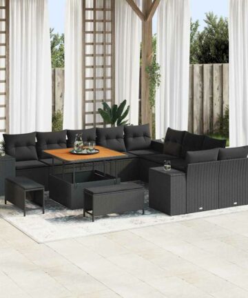 Dieses Garten-Sofa-Set hat ein stylisches, modernes und modulares Design, das perfekt für Terrassen und Gärten ist. Mit einem stabilen Stahlrahmen und Poly-Rattan sieht es super aus und bietet das gemütliche Gefühl eines komfortablen Außenplatzes. Zudem hält es dem britischen Wetter im Frühling und Sommer stand. Materialien: Das Sofa-Set kombiniert stylisches, UV-beständiges Poly-Rattan mit solidem Akazienholz für einen stabilen Halt und einen Hauch von Eleganz. Es ist robust und super für entspannte Zeiten im Freien und vereint Komfort und Langlebigkeit. Enthaltene Komponenten: Das Set hat ein schickes Rückendesign für eine angenehme Optik und bequeme Rückenstütze, plus schaumgefüllte Kissen für ein entspanntes Sitzen. Die geschwungenen Armlehnen sorgen für ein angenehmes Relaxen und tragen zur gemütlichen Atmosphäre bei. Eigenschaften / Funktion / Design: Dank der modularen Anordnung kannst du das Layout einfach an die Anzahl deiner Freunde oder die Größe deines Raums anpassen. Es hat auch verstellbare Füße für Stabilität auf unebenem Boden und cleveren Stauraum, um Kissen oder andere Sachen zu verstauen, was dir das Entspannen leichter macht. Empfohlene Anwendungen: Ideal für späte Frühlings- und Sommer-Events ist dieses Sofa-Set perfekt für Gärten und Terrassen. Es bietet einen gemütlichen Platz für Familienzeit, gesellige Treffen oder einen entspannten Nachmittagstee und ist der perfekte Rückzugsort in der Natur. Pflege & Wartung: Um es in Topform zu halten, decke das Set ab, wenn du es nicht benutzt. Wische es einfach sanft ab und vermeide aggressive Reiniger, dann bleibt es über die Jahreszeiten in der besten Verfassung.