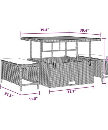 - Gesamtabmessungen: 100 x 100 x 71 cm (L x B x H)