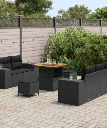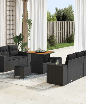 Das Garten-Sofa-Set ist ein echtes Highlight für Naturfreunde. Es steht für Einfachheit und Praktikabilität, mit klaren Linien und ohne viel Schnickschnack – die perfekte Ergänzung für jeden Garten oder jede Terrasse. Mit seiner geflochtenen Textur hat dieses Set einen rustikalen, aber modernen Charme, der altmodischen Style mit zeitgenössischem Look verbindet. Sein cleveres Design fügt sich super in natürliche Umgebungen ein und bietet einen tollen Platz zum Entspannen und Spaß haben. Egal, ob du eine Teeparty schmeißt oder einen ruhigen Abend unter den Sternen genießt, dieses Set sorgt für eine stylische und einladende Atmosphäre bei jeder Gelegenheit. Robustes Rückenteil: Hergestellt aus strapazierfähigem Poly-Rattan, sieht dieses Rückenteil nicht nur gut aus, sondern ist auch stark genug für deinen Außenbereich. Die geflochtene Textur sorgt für Luftzirkulation und hält alles kühl, wenn es warm ist. Enthaltene Teile: Das Set besteht aus vier Armsofas mit praktischem Stauraum, einem Mittelplatz, zwei quadratischen Hockern und einem Esstisch. Diese Teile sind flexibel gestaltet und bieten viel Sitzplatz und Stauraum in einem kompakten Paket. So schaffst du einen großen und organisierten Außenbereich. Features / Funktion / Design: Dank des UV-beständigen Designs bleibt das Material auch in der Sonne geschützt, sodass deine Möbel im Frühling und Sommer frisch aussehen. Die Kissen lassen sich leicht abnehmen, was die Pflege kinderleicht macht, und so kannst du mehr Zeit in deinem Outdoor-Paradies genießen. Empfohlene Nutzung: Dieses Sofa-Set ist perfekt für Gärten, Terrassen oder jeden Außenbereich, der einen stylischen Touch braucht. Sein schönes Design passt klasse zu modernem Flair und bietet sowohl Funktionalität als auch einen schicken Look für verschiedene Bereiche, wo es gemütliche Sitzgelegenheiten und unvergessliche Momente geben kann. Pflege & Wartung: Um deine Möbel in Topform zu halten, decke sie ab, wenn sie nicht benutzt werden oder wenn das Wetter schlecht ist. Einfach mal mit einem feuchten Tuch drüber wischen, und schon bleibt alles sauber. Die Kissen können problemlos für die Reinigung oder den Austausch abgenommen werden, damit der Sitzbereich immer einladend bleibt.