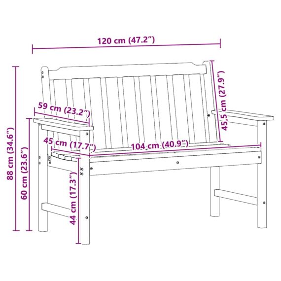 - Gesamtabmessungen: 120 x 59 x 88 cm (L x B x H)