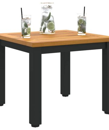 Der Garten-Side Table ist eine schicke und praktische Ergänzung, die du dir nicht entgehen lassen solltest. Seine glatte, quadratische Fläche ist modern und stylisch, aus hochwertigen Materialien, die ein modernes Design ausstrahlen. Es ist dein Tisch für Gartenpartys im Sommer oder entspannte Momente auf deiner Terrasse. Die matte Oberfläche bringt einen Hauch von Eleganz für alle, die klare Linien und praktische Designs mögen. Materialien: Die Tischplatte ist aus massivem Akazienholz, das super langlebig und wetterfest ist. Die schönen, warmen Töne des Holzes heben die Atmosphäre im Freien richtig hervor. Seine natürliche Stärke gegen UV-Strahlen und Wetter macht ihn ideal für draußen und verbindet Stil mit Langlebigkeit. Inklusive Komponenten: Er hat quadratische Stahlbeine, die feste Stabilität für alle Arten von Outdoor-Situationen bieten. Diese Beine wurden für starken Halt entwickelt, sodass der Tisch auch bei häufiger Nutzung belastbar bleibt. Außerdem sorgt der Stahlrahmen für eine zuverlässige Struktur und lange Haltbarkeit. Funktionen / Gebrauch / Design: Das moderne Design mit seiner glatten Textur macht ihn zur idealen Wahl für zeitgenössische Outdoor-Stile. Die matte Oberfläche verleiht ihm eine dezente Eleganz und bietet die perfekte Fläche für Dekoshops oder praktische Anwendungen. Die UV-beständige Eigenschaft sorgt für ein gutes Gefühl an sonnigen Tagen. Empfohlene Verwendung: Egal ob im Garten oder auf der Terrasse, dieser Tisch bringt die richtige Balance zwischen Stil und Nützlichkeit. Nutze ihn für morgendliche Getränke, gesellige Abende oder einfach als schönen Platz zum Entspannen. Er fügt sich gut in verschiedene Outdoor-Setups ein und ist vielseitig genug für alles, von gemütlichen Ecken bis zu großen Rasenflächen. Pflege & Wartung: Es ist einfach, ihn gut in Form zu halten – schütze ihn vor zu viel Sonne und starken Reinigungsmitteln. Ziehe nichts über die Tischplatte; wische stattdessen hin und wieder vorsichtig ab. Überprüfe die Metallteile regelmäßig, um sicherzustellen, dass alles gut funktioniert.